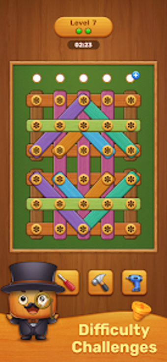 이 게임은 Undo, Unscrew, Hammer, Drill과 같은 다양한 강력한 부스터를 특징으로 하여 플레이어가 까다로운 퍼즐을 효과적으로 탐색할 수 있도록 합니다. 사랑스러운 나무 나사 캐릭터는 매력을 더하고, 다양한 테마는 게임 환경의 개인화를 가능하게 합니다. 논리적 추론과 문제 해결에 중점을 두고 있는 Wood Screw: Nuts & Bolts는 플레이어가 복잡한 퍼즐을 즐기면서 기술을 연마할 수 있는 편안한 분위기를 제공합니다.